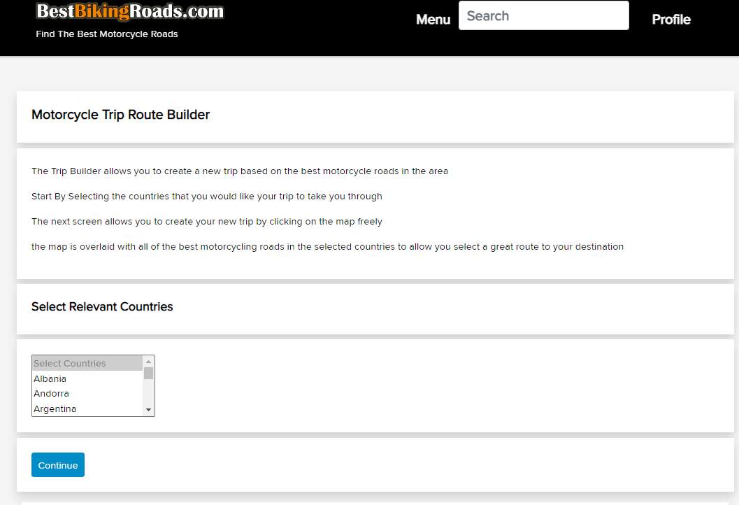 After the appropriate countries have been selected for the trip from the list, the trip builder map shown contains all the route data from the BestBikingRoads.com database for the countries selected, when create your custom trip, it will not automatically snap to the routes, so you are free to choose which of the routes you would like to follow by simply plotting over them. As you have observed, the route data lines are thinner on the trip builder than on the regular routes, this is because of the volume of data on the map, if they are shown thicker, the map itself is very obscured and difficult to see.