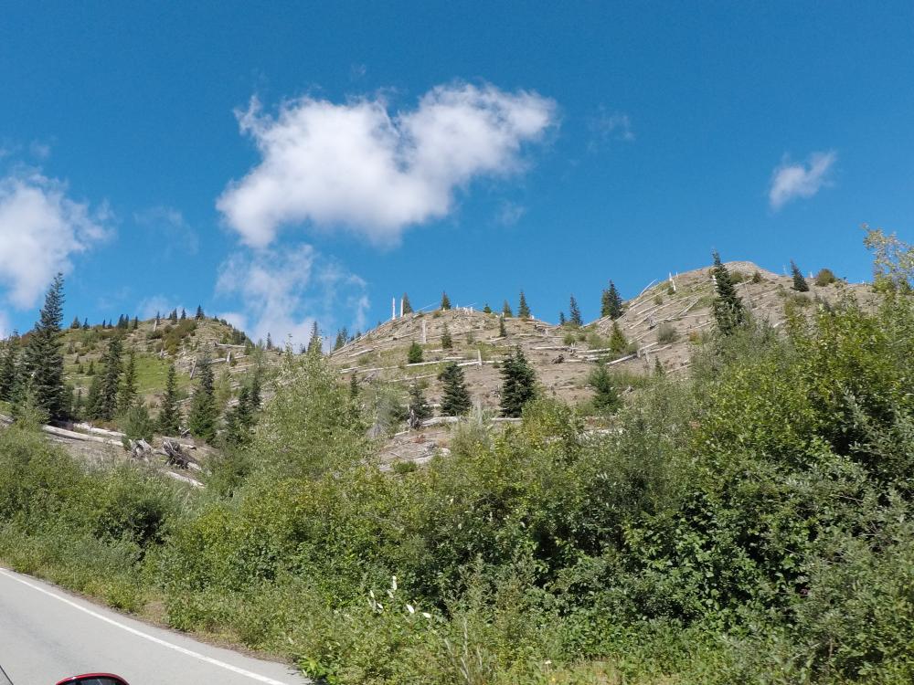 Downed trees from Mount St Helens 1980 eruption, not a lot has grown back.