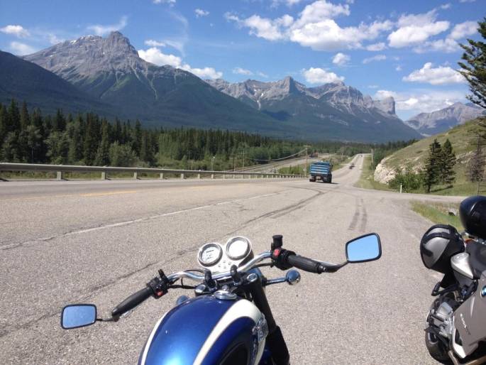 Highway 1A from Cochrane to Canmore is a scenic stretch of road, beginning in foothills and prairies, and ending in the Rockies. About half of the section is posted for 100km/h and the other half is posted for 80km/h. I find it pleasant at 130 or so. There are about a dozen or so turns posted for 65km/h and another two or three posted for 55km/h. With its recent resurfacing a skilled rider will enjoy taking these turns at 110-120km/h. The route from Canmore to Banff requires using the TCH. About 10km west of Banff you will find the turn off the the Bow Valley Parkway (Route 1A again). Now the speed limit is 60km/h, which is ridiculous and is set primarily because youre supposed to enjoy the scenery through Banff National Park, but at 110 or so the run to Lake Louise is sweet. On summer weekends the traffic can be a nuisance, especially on the last (60km/h) section, but taking it during off-peak times is extremely rewarding. The scenery is lovely.