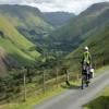 This narrow, twisty, well surfaced uphll section has many nice corners and although it has solid white lines all the way along it is possible to pass safely in places on a bike.