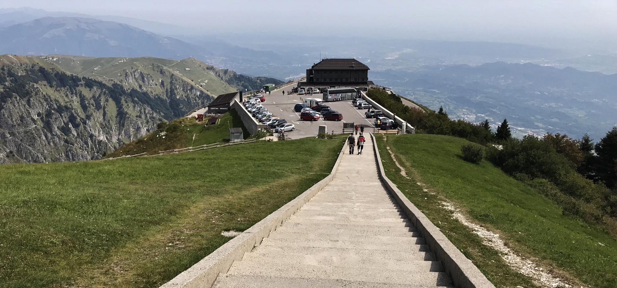 The summit of Monte Grappa is a most sought-out destination for History buffs, Para-gliders, and Motorcyclists. The route I took begins at the foot of the mountain and immediately thrusts you into aggressive hill-climbing for about 45minutes on my bike. Preferably ridden on something akin to a BMW RS 1200 would have been easy. Riding my Honda GL 1500 F6 is a challenge. Hairpins are many as are straight-aways. Do not sight-see, it could be dangerous if you get distracted. Once at the Military Cemetery at top is also a Brauhaus with plenty of parking and seating for a wonderful lunch. I found many motorcyclists friendly to chat with. Another pal arrived on his Harley Bagger showing that a few of us can also mountain climb. My route down was on Route 148 to the north, connecting me with the Auto Strada back to Bassano. My video is that ride.