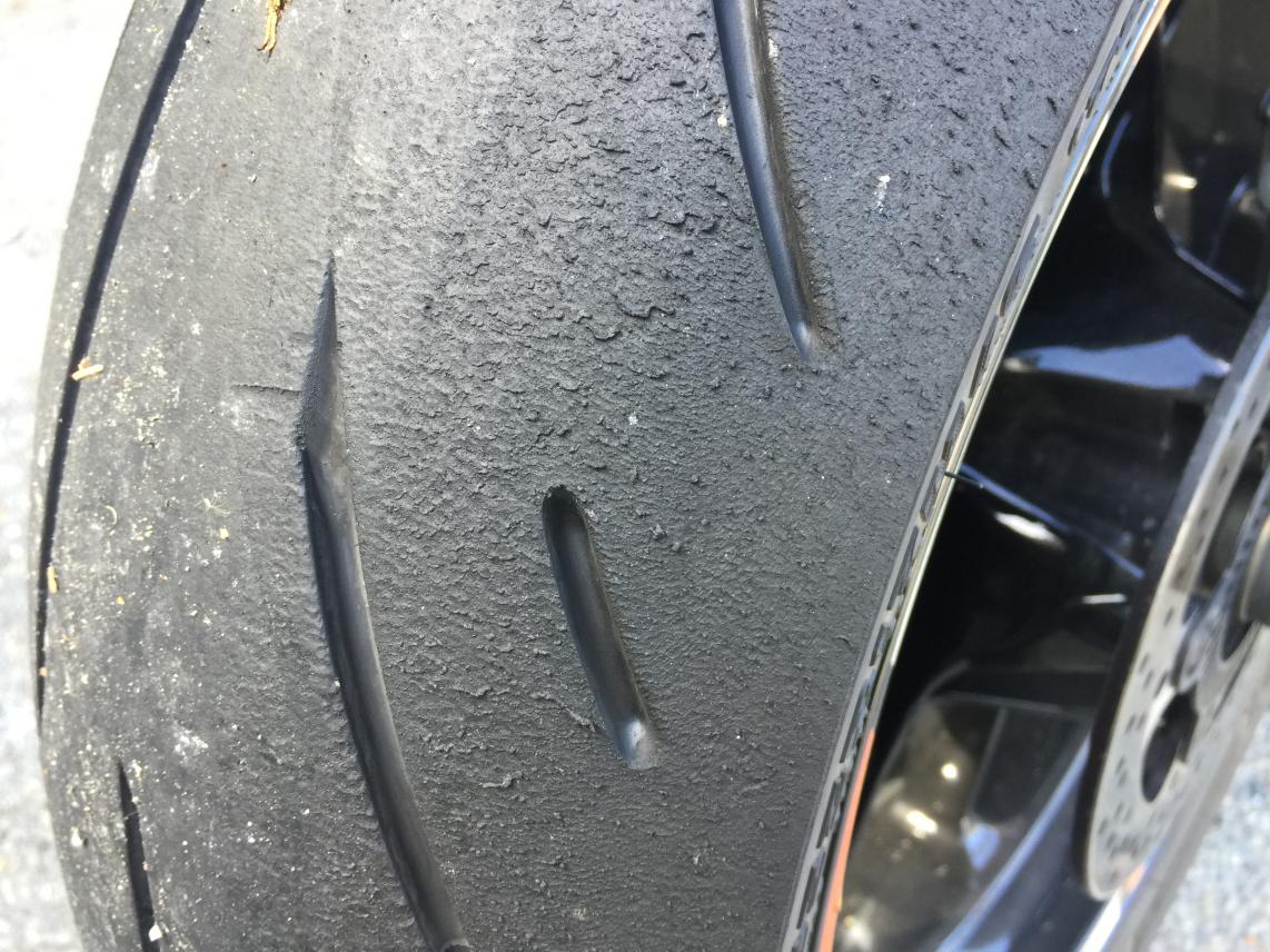 The new Bridgestone S22 rear tyre after a spin over the Takaka hill on the 790 Duke.