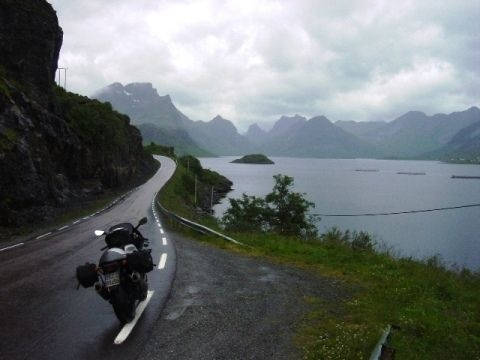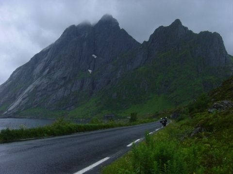 The Lofoten Islands are spectacular. Not to be missed. If you only have time for the Nordkap or the Lofotens, I would chose the Lofotens. Unfortunately, the weather was quite wet when I was there, but the majestic, natural beauty still shone through. As a motorcycling road, it may not be the best, but the spectacular scenery more than makes up for any shortcomings.
