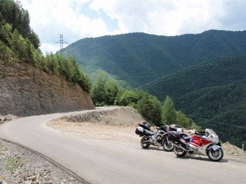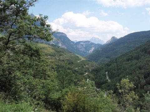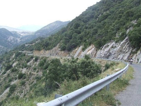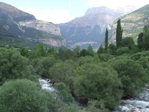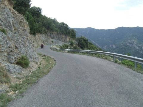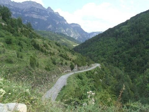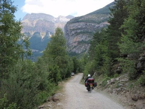 We tried to take the first right as you head North out of Torla with a plan of getting right into the heart of Ordesa National Park, but soon realised that the bikes weren't cut out for this terrain. The track as it turned out to be climbs from 900 metres to 2200 in a few ks. 'See pictures 3 and 4 and you'll see why we had to turn back. There are also signs saying no vehicles but how strictly they enforce the law will for now remain unknown. Plan B. We headed south out of Torla and took a left at Sarvise on the HU 631. We were hoping to find some smaller, less travelled roads into the picture postcard surroundings. We succeeded. The 631 (they had the cheek to name it!) connects Sarvise and Escalona and really puts you in touch with nature. You won't be greeted with smooth fast tarmac, more so, potholes and gravel. For 35km! There are some nice twisty stretches and it is passable by road bike but I wouldn't risk dropping your new Busa on some of it's testing corners. But, we took the chance, came out the other end unscathed, and thoroughly enjoyed ourselves. A big trailie would be in it's element on this road and I find myself offering encouragement to try it. You just might like it. An experience i'll remember for years to come. Head South on the A-138 out of Escalona and spend the night in Ainsa drinking lager out of frozen glasses. And Hostal Ordesa is still only €40 per room per night inc bfast.