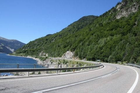 A very varied section that climbs spectacularly up a mountain, then ducks into a 5k tunnel. After that it twists and turns like crazy before some higher speed corners on the way to Benabarre. Well worth a look. Pont de Suert and the excellent N260 cross this route at about the halfway point (perhaps the best road in Spain).