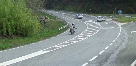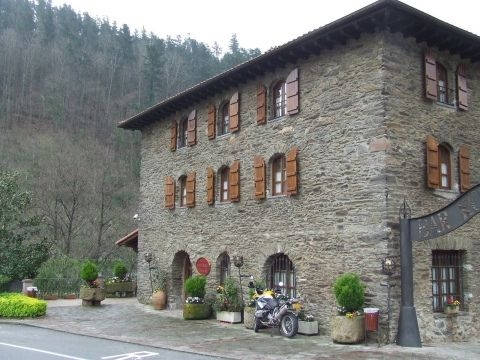 The N121a begins its journey at the impressive Navarre region capital of Pamplona and casually wanders the 70 kilometres north to the border city of Irún in the Basque country. It winds along the Río Ultzama and Mediano before joining with the Río Bidasoa, which for its last 10km creates the border separating Spain from France. It's a very green area with trees and wildlife in abundance, along with many 'Granjas' or farms. There are lots of traditional small Spanish villages just off this route and you can always find a good 'Posada' for something to eat. Try the local dish of beef cooked on coals, delicioso! The road:- It's a fast route out of Pamplona and is typical of many routes in Spain. But the further north you go, the twistier and prettier it becomes. The surface is good from start to finish with nothing to really worry you and is ideally suited to sports and sports tourers. It's quite a busy route and you'll not have the road to yourself for long periods, but that's to be expected when you consider the geography. There is still lots of fun to be found and a rapid pace can be set if you 'feel the need for speed'. We took it relatively easy and enjoyed the scenery that you. There's not much in the way of elevation changes but if you want that sort of thing you're never far away from the mountains. There were loads of bikes travelling this road when we visited and to see other bikers enjoying the same road as me always makes me smile. Car drivers just don't get it do they? Accommodation:- We stopped on this road at the Etxalar Hotel which is the stone building in the photos and is also shown on the map. It's a great hotel and has to be one of the best places we stayed on our trip. The staff were friendly, the rooms excellent, and the food was to die for (not literally you understand) It's right by the roadside so you can sit and listen to the bikes riding past whilst enjoying an ice cold lager. There was a traditional Spanish wedding reception taking place during our stay which was nice. The staff apologised for the noise but they needn't have. We enjoyed watching the Spanish partying as only the Spanish know how. You can have a much closer look at the Etxelar here It's their official web-site with details of activities in the area, photos, prices etc. Would I stop there again? A definite yes. Place of interest?:- Pamplona of course. You could spend a few days taking in its history and if you're there from 6th July you could join in the week long festival of San Fermin. Why not join in the Encierro The running of the bulls? If you're really lucky you could get yourself gored or trampled. How nice. I think i'll take my chances on a bike. P.s. A big Hello to Kev, the owner of the Beemer in the photos. We saw him the previous evening in Ainsa, some 250 kilometres away, and somehow ended up in the same place the following night. It was a pleasure to meet you and we'll share a few beers next time i'm in Barcelona. Hasta pronto.