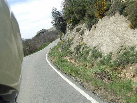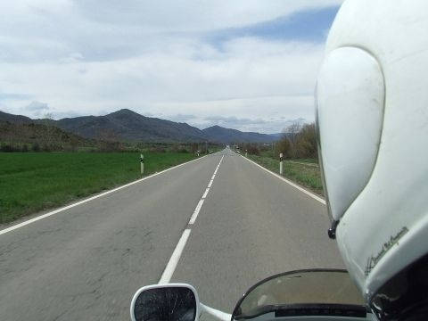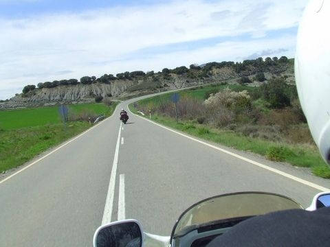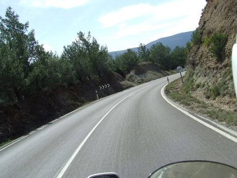 We rode from Biescas to Pamplona via this road. Its a good route that is especially pretty past Embalse de Yesa (Lake Yesa???) It also runs past a crazy looking hilltop village as seen in one of the photos. Its a long way from the twisties of the nearby Pyrenees, instead being a road that will see you really eat up the miles. Think big capacity Sports Tourer for this one as silly speeds are easily maintained on its long, long straights. If you need to get to Pamplona in a hurry this road is just the ticket. I imagine it would be a favourite for speed cops in high season as they could see you coming from miles away. I thought it was okay, but my son loved it and went on and on about it into the small hours over far too much cerveza.