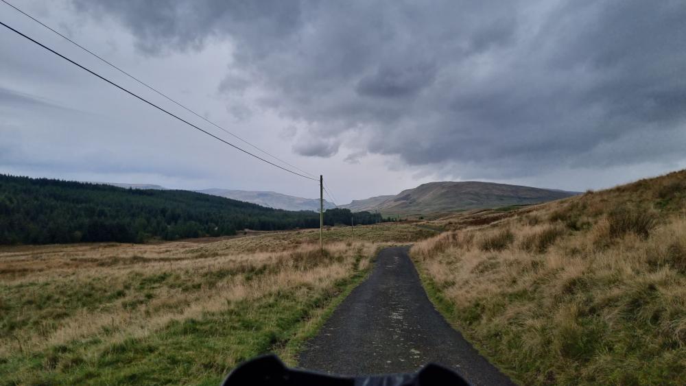 Originates in Callander, takes the back route to Kippen via Thornhill, then up easy twisties to Fintry. A left turn takes you towards Lennoxtown along a road that would be scary at speed, twisties just ain´t the word. It then scoots through a bit of urban to a really narrow road called Tak Ma Doon up over into Campsie Glen, beautiful mountain top heather, and back through stunning scenery to Fintry and back to Callander