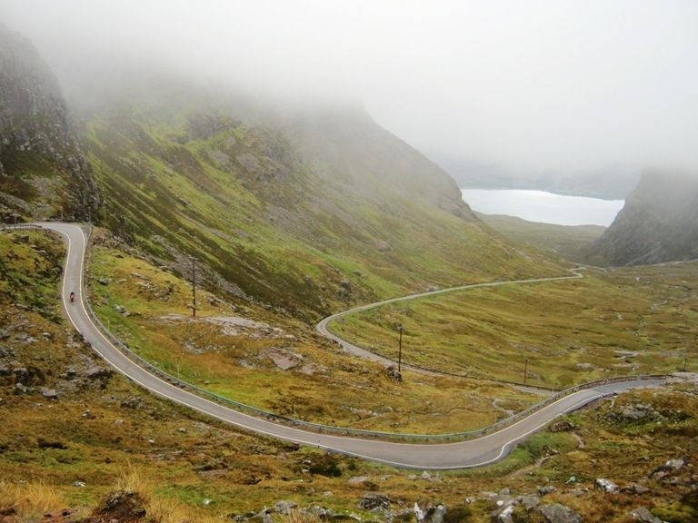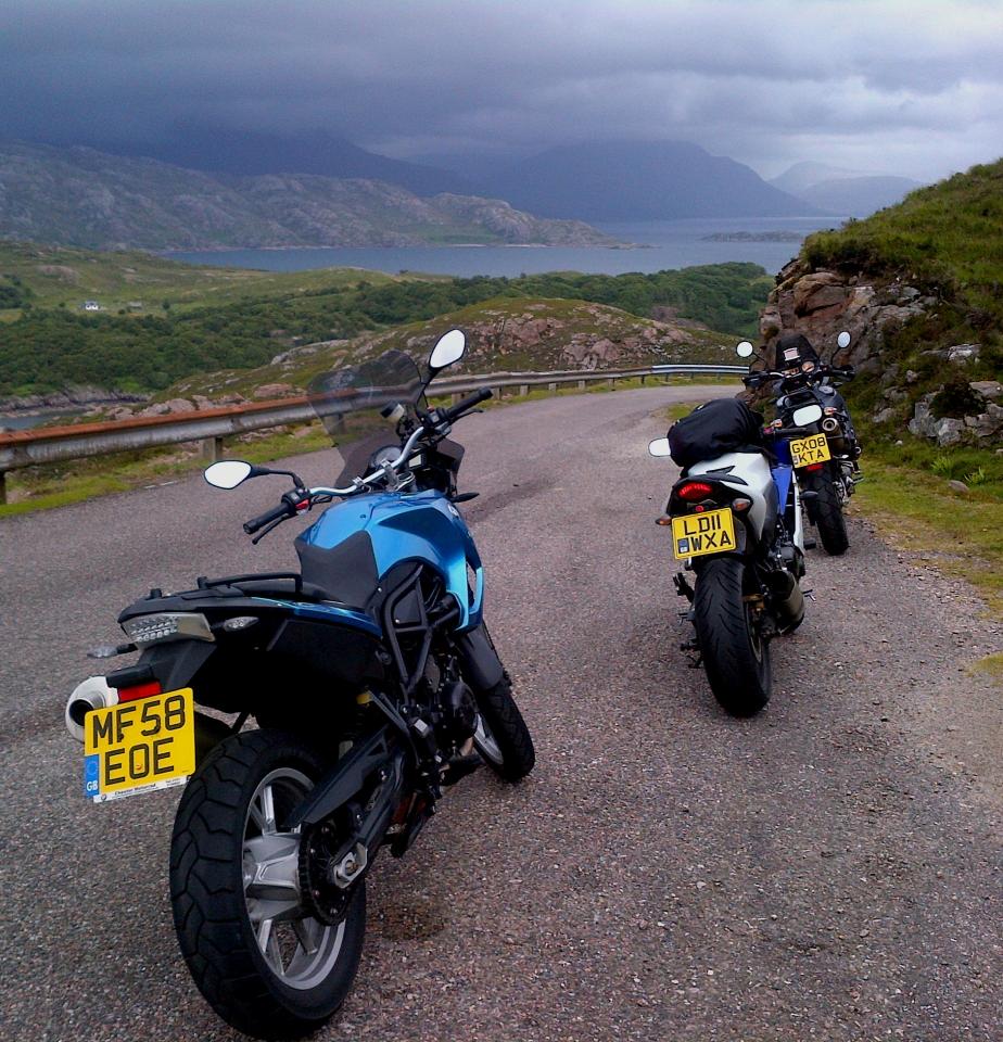 We recently rode the Applecross pass on a biking trip around the Highlands and Skye. There was a howling gale which made for a tricky ride at times and angry skies, but it was a brilliant experience, with beautiful views despite the cloud and a mix of gentler corners and more difficult hairpins. After the descent we took the coastal route back. The rain started driving in then, but the coastal route was also twisty enough to keep us on our toes, despite the lack of wind protection. I was on a BMW GS650, after my Triumph broke down and although it was a new ride for me it handled superbly. The bike tractored on through gravel and uneven surfaces as if it was made for this type of terrain. At the pub after the descent we had delicious fresh fish, peas and chips, plus met bikers from Holland, Germany and Canada all with massive smiles on their faces. This road was one of the many amazing roads across this part of Scotland - will definitely be returning to do it again (maybe in the sunshine next time).