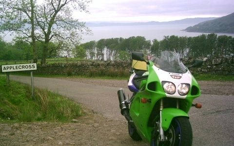 Beallach Na Ba- the cattle pass. People come from all over to try out this road. It is single track with passing places. Cars tend not to stop for bikers, thinking we steer off the road. That may be, but some spots have a good 6 inch drop. Applecross could only be reached by boat until this road was constructed in the early 20th century, so the island culture remains. This means you cant fill up in Applecross on Sundays, so make sure you fill up in Loch Carron, even on weekdays. The initial climb has a few twisties and the road is a little wider here, and gives you a taste of what si to come. the road turns to the left, and you get a glimpse of the mountains. Then you can see a fair way ahead, but it gets narrow here. Fastest Ive been here is 60. Then come the hairpins (oh yes!) Snow at this point in april is not uncommon, and these are proper hairpins. Once clear a short section of blind corners, and youre at the top! There is a car park with a viewpoint and ona clear day... wow. Even on a misty day (weather is very unpredictable here) it lends teh mountains with a certain majesty. The descent to applecross has one or two open sections, some more tight tight corners, and youll find yourself back at sea level in Applecross. There is petrol here Monday to Saturday. You can get cash at the campsite, (and you can stay there too). There is a general store. The Applecross Inn does accomodation, beer and whiskey and very good langoustines. The sea over to Skye is a naval torpedoe range, so is closed to commercial fishermen, but not to local fishermen. The prawns grow to be HUGE, and they serve them at the Inn. Youve got to try them. Turn right from the Inn and follow the road up to Applecross house and go to the walled garden. They do GREAT food here, and do an excellent spread for an evening meal, and idycllic surroundings. Further up the road, a B&B is planned, and should be running very soon now.